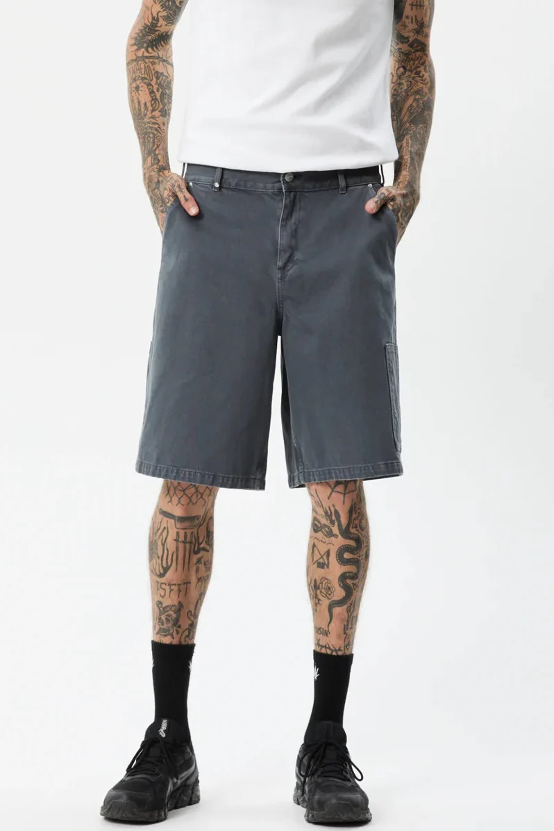AFENDS Mens Disorder - Organic Denim Carpenter Shorts - Slate