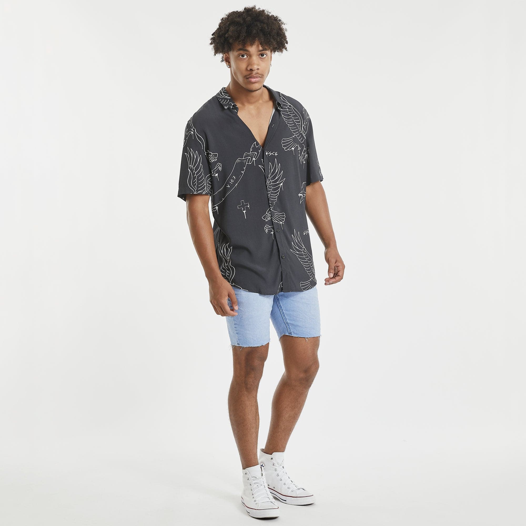 KISS CHACEY Mens Songbird Relaxed Short Sleeve Shirt Black & White Print