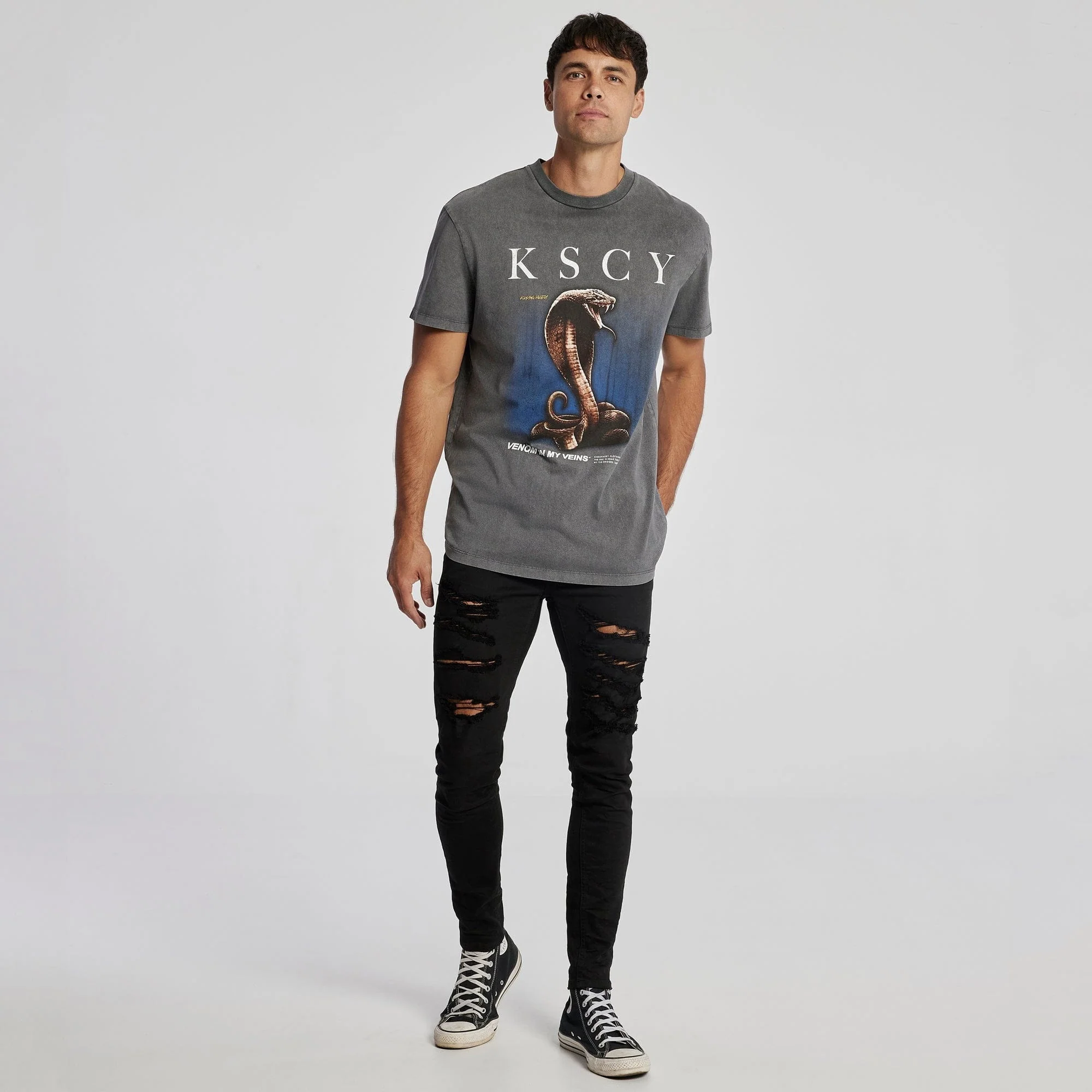 KISS CHACEY Mens Venom Relaxed Tee Shirt Mineral Asphalt
