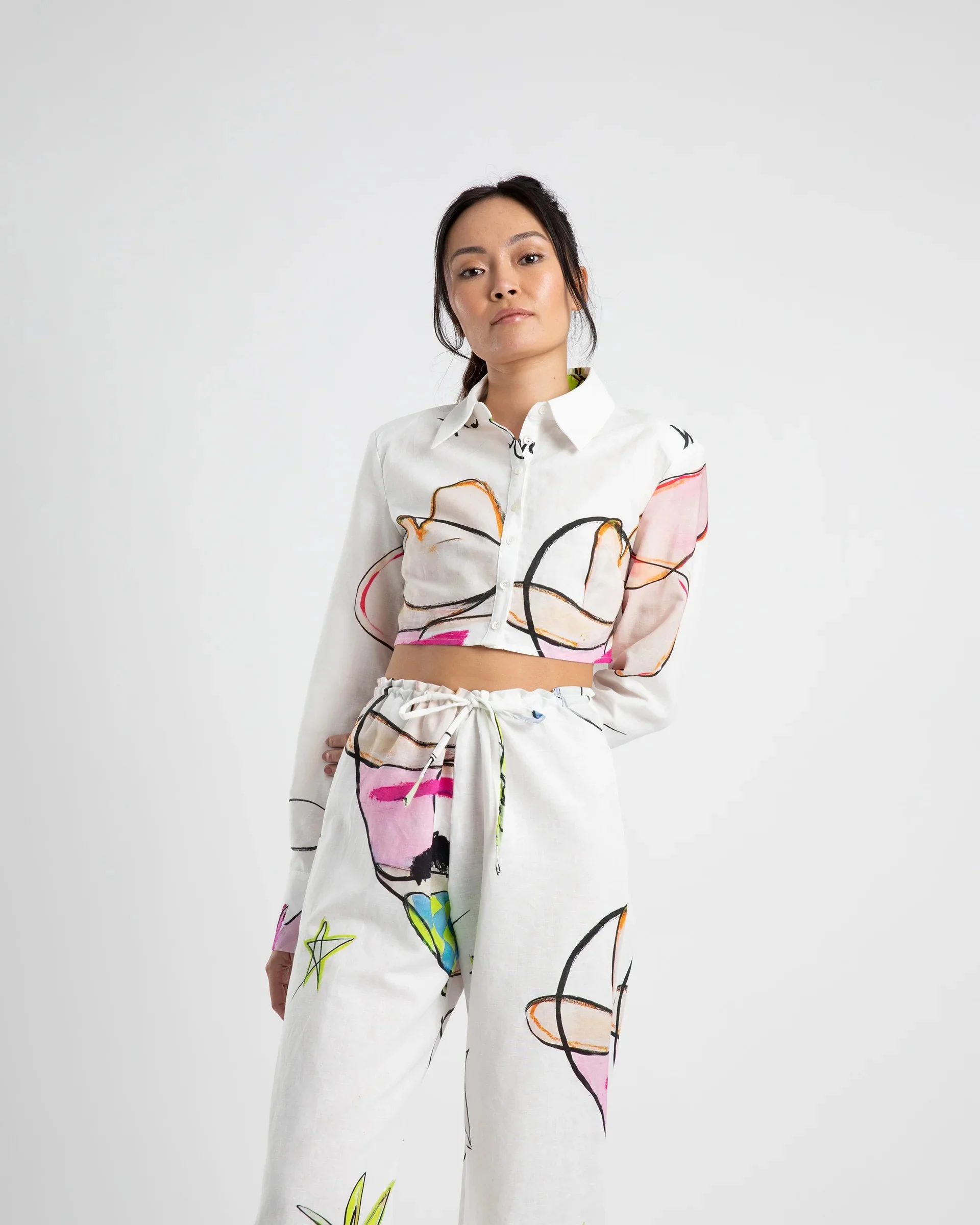 Featuring custom hand-painted print by in-house Summi Summi artist, Stevie Shu.